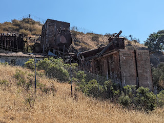 Maybe some things are best left undisturbed? Evidently this rotary furnace was used until 1976, which seems ... recent, even though nearly 50 years have passed. As incongruous as it is, it made sense to build it here to process the ore on site rather than transport the raw material elsewhere. (Unfortunatley with little or no awareness of the ensuing contamination.)Crushed ore was heated to release mercury vapor, which condensed in the system of pipes to be collected in liquid form. One thing that didn't get discussed today was the health impact on those who worked with these substances.